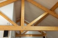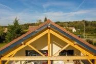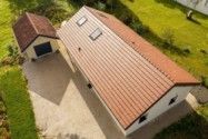 Réfection de couverture en tuiles Alpha 10 ton rouge ancien, isolation des rampants de toiture en combles aménagées en sapisol, habillage des bandeaux de bas de pente, et création de fenêtres de toits (Velux) - Charpentes Duchêne - Arbois - Jura