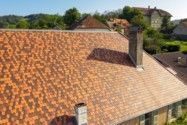 Réfection de charpente, couverture en tuiles Vauban Ecaille rouge nuancé, zinguerie en zinc quartz- Charpentes Duchêne - Arbois - Jura