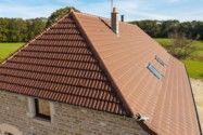 Réfection de charpente, couverture en tuiles Standard 9 vieillie Masse, zinguerie en zinc naturel, création de fenêtres de toits (Velux), isolation triso laine max et laine de verre - Charpentes Duchêne - Arbois - Jura
